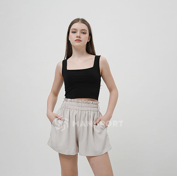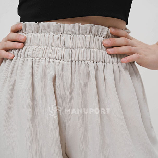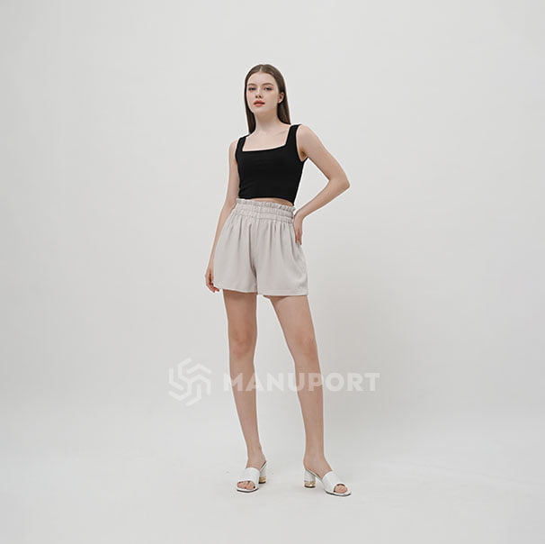 Celana Pendek casual dengan detail full karet 3 line di bagian pinggang.